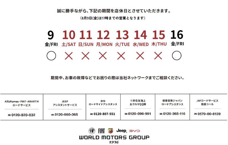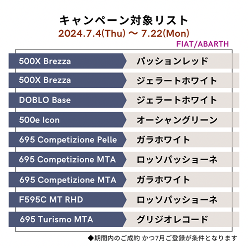こんにちは!7月も半分を過ぎてしまいましたが・・長い歴史の中で多くの方々に愛され日本向けの生産が終了したFIAT500へ感謝を込めたキャンペーン実施中でございま...